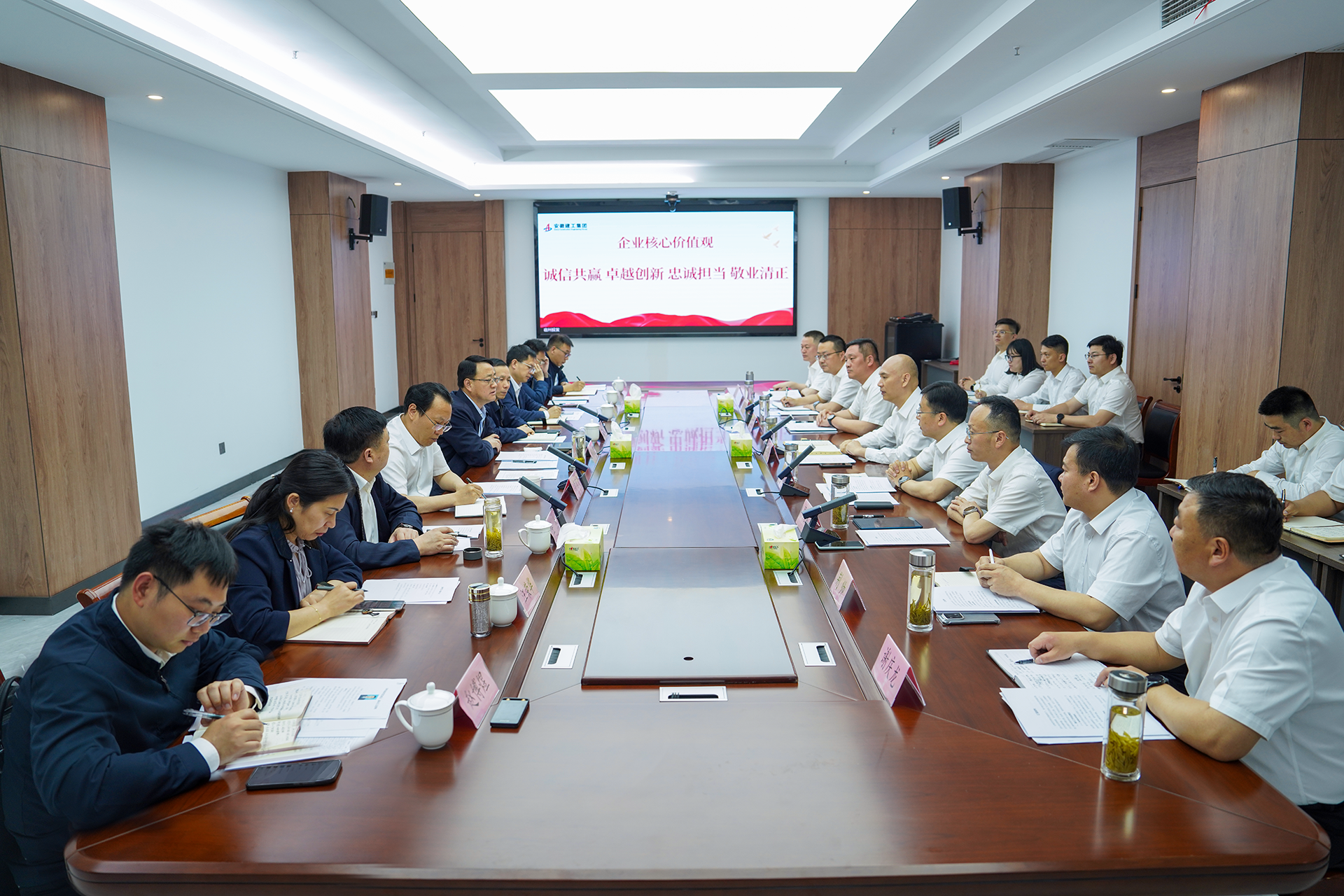 7月2日上午,建工宿州投發(fā)公司黨委召開慶祝建黨104周年表彰會暨黨課報告會,建工股份黨委委員、副總經(jīng)理,建工宿州投發(fā)公司黨委書記、董事長朱忠明出席會議,傳達集團慶祝建黨104周年表彰會暨專題黨課報告會會議精神,并作題為《深化作風(fēng)建設(shè)強化責(zé)任擔當堅定發(fā)展信心全力推動公司轉(zhuǎn)型發(fā)展取得新成效》的專題黨課報告,公司黨委副書記、總經(jīng)理周國林主持會議。大會在莊嚴雄壯的國歌聲中拉開帷幕。公司副總經(jīng)理代鵬飛宣讀2